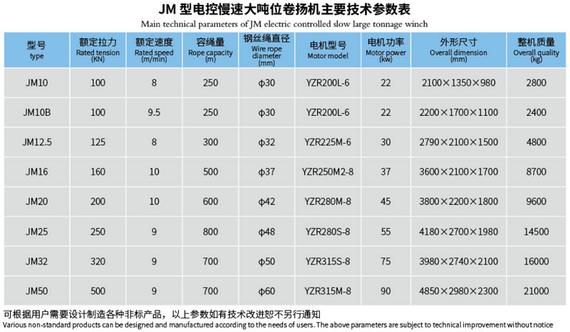 JM系列卷揚(yáng)機(jī)主要用于各種大型、特大型砼、鋼結(jié)構(gòu)及機(jī)械設(shè)備的安裝和拆卸。其結(jié)構(gòu)特點(diǎn)是鋼絲繩排列有序、起吊安全可靠。適用于各種橋梁、港口、碼頭等路橋工程及大型廠礦工程設(shè)備安裝。