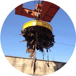 本系列用于吸吊鑄鐵錠,鋼球,生鐵塊,機加切屑;鑄造廠的各種雜鐵,回爐料,切料頭;打包廢鋼等。